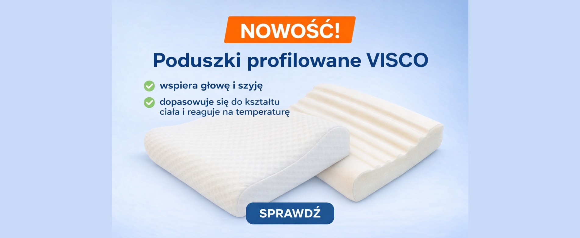 Duża poduszka profilowana, pianka VISCO memory foam 49x35x14
